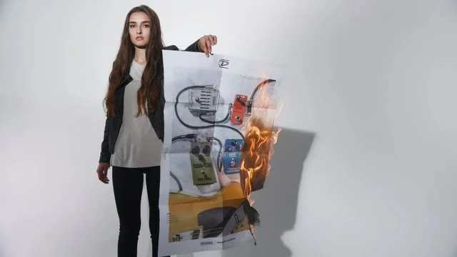 Every year the Dunlop creative team looks ahead at the coming year and brainstorms a new look and feel for our campaigns. For 2017, we decided to burn it all to the ground. Gone are the warm, seductive closeups of product in aspirational band practice spaces. Gone are the beautiful but languid videos lovingly depicting an earnest male guitarist honing his craft by low light. For 2017, we're going bolder, louder, starker; lighting inspired by Helmut Newton's color photography, hyperactive video editing with oversized type that wouldn't look out of place on early-90s MTV, and a focus on celebrating the Girl Guitarist. So far, it's raised the hackles of a portion of the brand's male-dominated usership and created a "spirited dialogue." Good.
